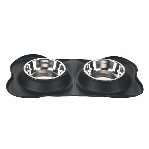 Doppia ciotola animali in acciaio con tappetino antiscivolo in gomma